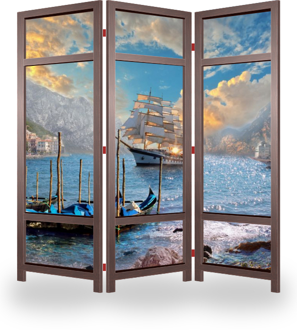 Ширма эконом отлично подойдет для временного размещения, рекламы, для отгораживания объектов интерьера и его дополнения. Лицевая сторона с изображением, обратная сторона открытый каркас