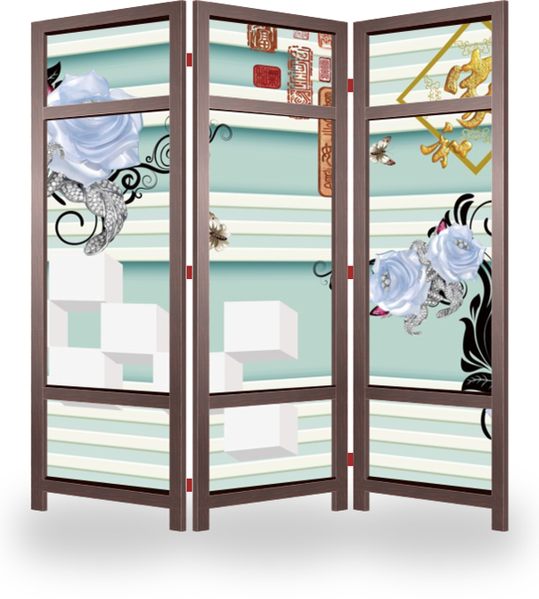 Ширма эконом отлично подойдет для временного размещения, рекламы, для отгораживания объектов интерьера и его дополнения. Лицевая сторона с изображением, обратная сторона открытый каркас