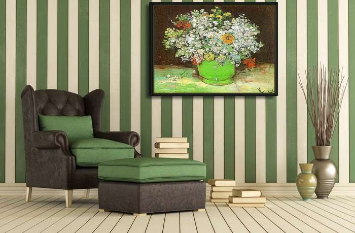 Каркас на который натягивается изображение может быть 2 или 4 см. Это то расстояние на которое изделие будет отступать от стены.