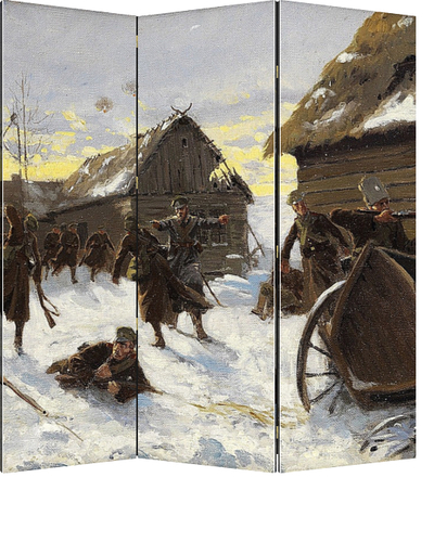 Военное сражение в снежной деревне