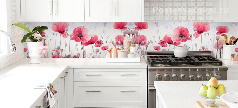 Наклейка с изображением поляны нежных розовых маков станет отличным дополнением к интерьеру вашей кухни.