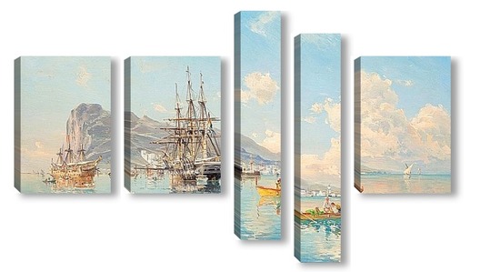 Модульная картина "Шведский военно-морской фрегат в Гибралтаре"