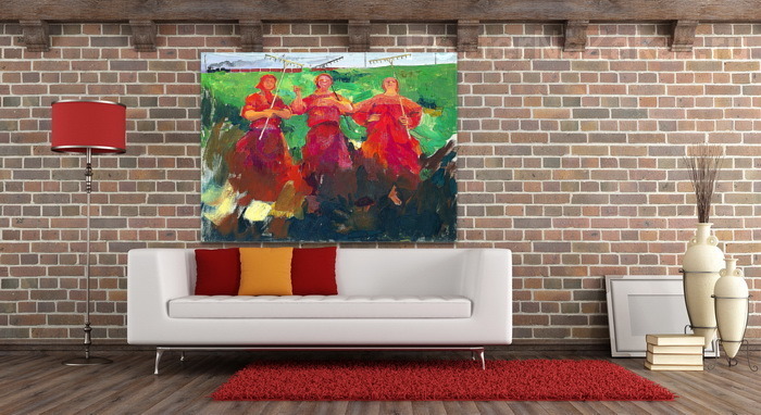 Картина сначала типографским способом переносится на холст, получается "тусклый" отпечаток низкого разрешения , затем художник расписывает ее маслом. Роспись выполняется поверх контура изображения на хлопковом холсте. Холст заполняется маслом не менее чем на 80% поверхности , при этом техника Автора может не выдерживаться, допустимы отклонения в оттенках. Срок изготовления 6-7 рабочих дней . Роспись художником это наиболее оптимальное соотношение цена/качество.