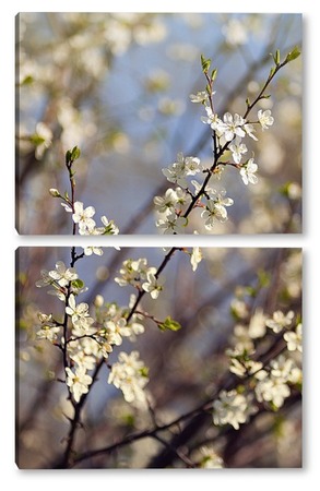 Описание модульной картины Цветущие деревья весной притягивают взгляд, повышают настроение и жизненый тонус! Цветущая ветвь сливы снята в Подмосковье в начале мая отличным солнечным днем.