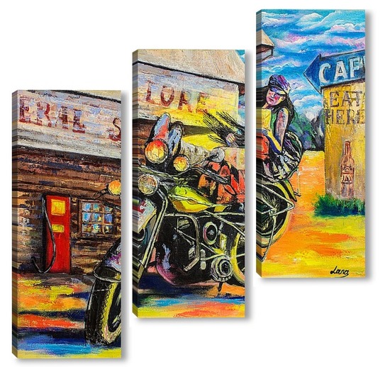Описание модульной картины Эта картина создана под впечатлением от работ художника Дэвида Ула. Из всех моих путешествий, которые ещё только планируется совершить, Трасса 66 занимает особенное место.