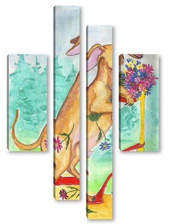 Описание модульной картины Очаровательный щенок таксы набрал букет ароматных полевых цветов, чтобы подарить своей мамочке в день её рождения. Картина вызывает чувство радости, восторга и умиления! Оригинал картины продан.