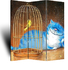 Описание модульной картины Пой, птичка, пой! В клетке маленькая канарейка поёт, заливается, синий кот слушает, наслаждается. Предвкушает. Наверное, всё кончится хорошо. Картина Рины Зенюк