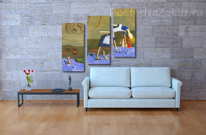 Описание модульной картины Льюис Кэрролл, Приключения Алисы в стране чудес, Алиса сидела со старшей сестрой на берегу и маялась: делать ей было совершенно нечего, а сидеть без дела, сами знаете, дело нелегкое; раз-другой она, правда, сунула нос в книгу, которую сестра читала,
