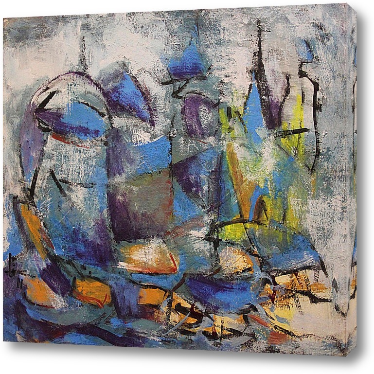 Описание модульной картины абстрактное произведение на холсте, выполненное в смешанной технике с условным изображением городского пейзажа, образное представление провинциального города, лирический пейзаж родного города