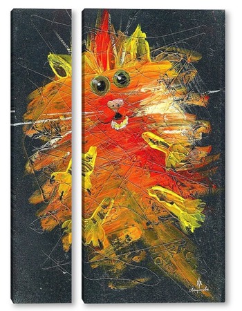 Описание модульной картины Картина родилась из палитры, остались мазки краски на картоне и вдруг вышел кот.Воинственный Кот Мяук. Картина на картоне- темперные и акриловые краски