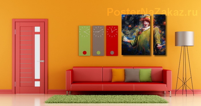 Описание модульной картины Обожаю клоунов, с многими дружу. Это волшебные люди! Цирк - это особая страна, свой мир, и я знаю этот мир, этих людей, без которых будет гораздл скучнее жить!