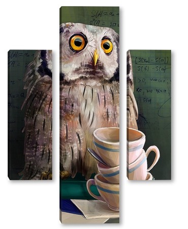 Описание модульной картины Ног у совы две, Грудь у неё одна, Рук у совы нет, А попа почти не видна. Есть у совы голова, К ней прикреплён клюв, Ушей у совы два, Поэтому чуткий слух. Сзади у сов хвост, Слева одно крыло, Справа ещё одно. У сов маленький рост. Есть у совы спина, Ч