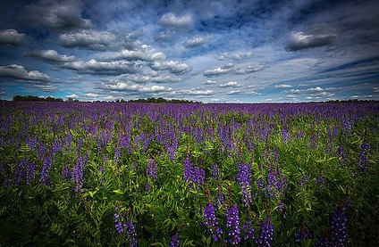 Описание модульной картины Поле из цветов Иван чая. Небо, наполненное густыми облаками. Все вместе давало неповторимый оттенок цветов. Снимок был сделан, как часто это бывает, совершенно случайно.