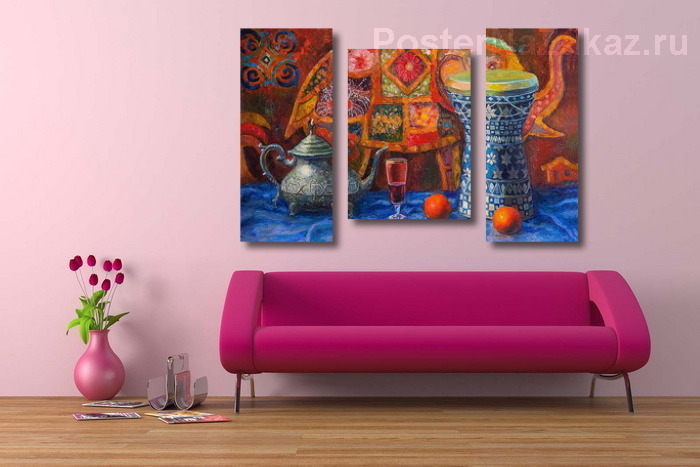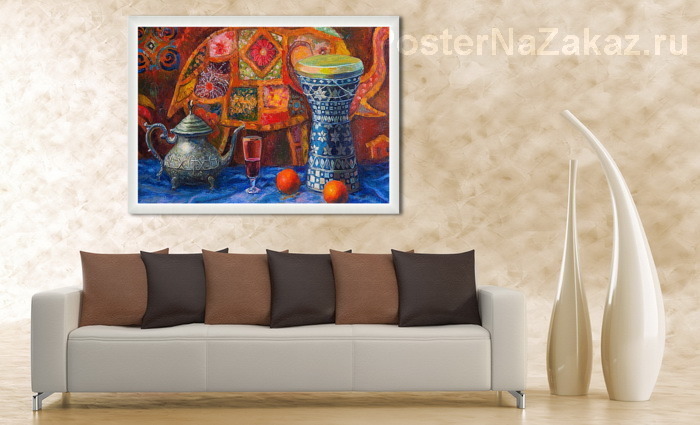 Описание модульной картины Картина "Марокканский натюрморт" / "Maroccan naturemorte". 2015, холст-масло, 45 см х 35 см Натюрморт с чайником, мандаринами и марокканским барабаном. Отличный подарок и украшение любого помещения, например кухни. Авторская работа. Художник Барышевс