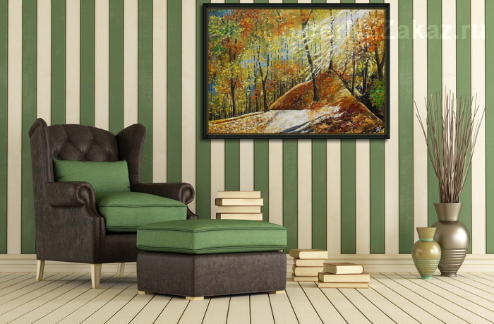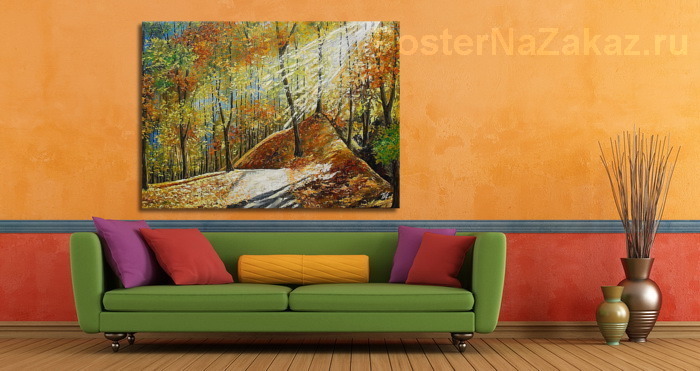 Описание модульной картины Картина изображает светлый лесок, листва которого уже позолочена первым дыханием осени. Сквозь кроны деревьев на небольшую полянку льется яркий солнечный свет, лучи которого дают надежду на продолжение хорошей погоды.