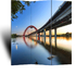 Описание модульной картины Особенностью данного моста является его конструкция — пилон выполнен в виде арочной конструкции с веерным расположением вант, перекинутой с одного берега реки на другой, причём мост пересекает реку под острым углом. По обе стороны моста, за исключени