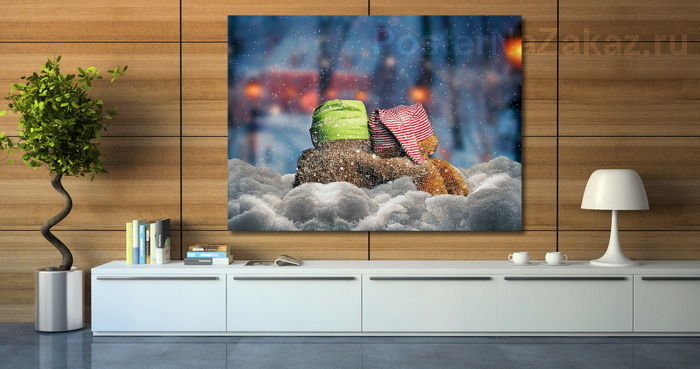 Описание модульной картины Милые медвежата обнимают друг друга и смотрят на красивый, пушистый снег. Маленькая сказка о нежности, любви, о доверии друг к другу. О том, что любовь согревает, даже зимой