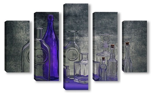 Описание модульной картины Натюрморт "Фиолет" - это фотоэтюд со стеклянными бутылками. Здесь главную роль играет свет, цвет, формы и пространственное расположение объектов съёмки.