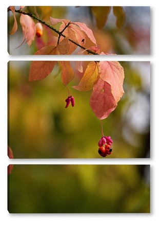 Описание модульной картины Нежно-розовые цвета осеннего бересклета украсят ваш дом, добавят тонкости вашим чувствам, напомнит вам моменты общения с природой, перенесет в мир красок и цветов, свежести, первозданной радости бытия...