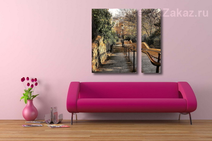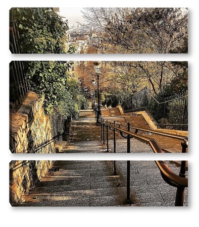 Описание модульной картины Монмартр - высочайший холм Парижа, название 18-ого муниципального округа. Имеет репутацию богемного и раскованного района столицы Франции. Туристов привлекают всемирно известные достопримечательности района