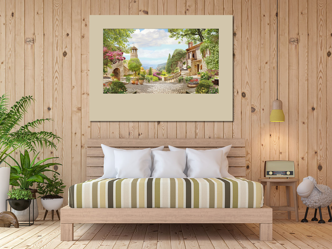 Каркас на который натягивается изображение может быть 2 или 4 см. Это то расстояние на которое изделие будет отступать от стены.