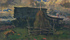 Описание модульной картины Оригинальная живописная работа в стиле импрессионизма, изображающая осенний день в деревне и копну возле сарая