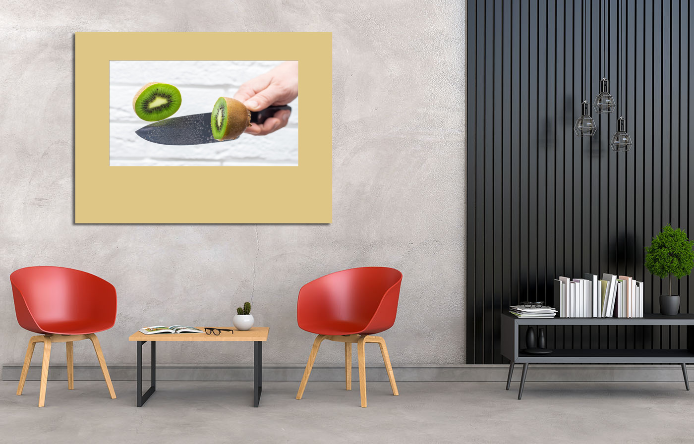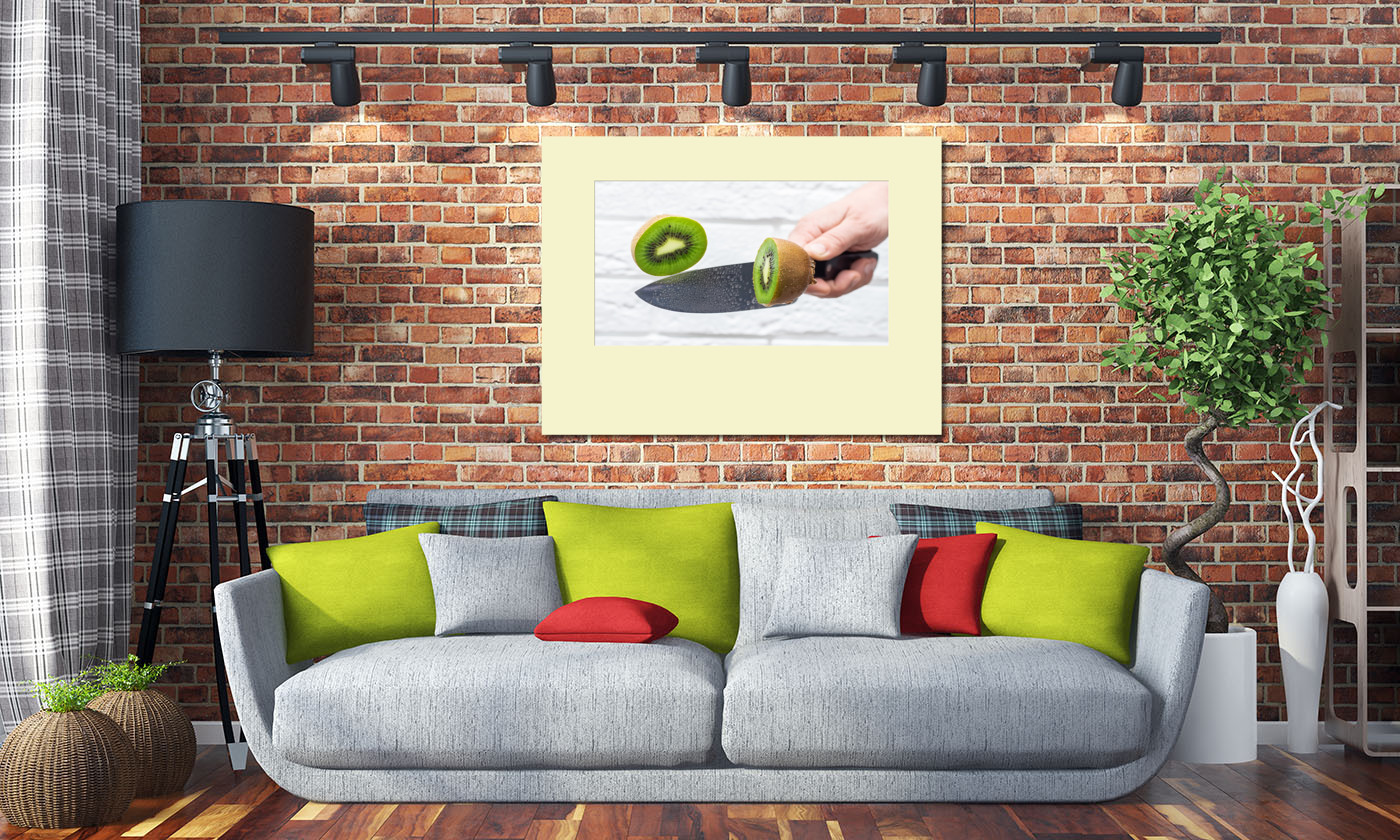 Модульная картина "Floating knife slicing trough kiwi fruit."