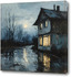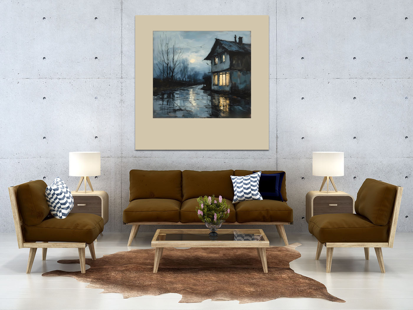 Описание модульной картины Талантливо написанный пейзаж.. Осенний дождливый вечер тускло освещённого пригорода. Дома с освещёнными окнами, в которых течет размеренная жизнь..Что может быть уютней и прекрасней