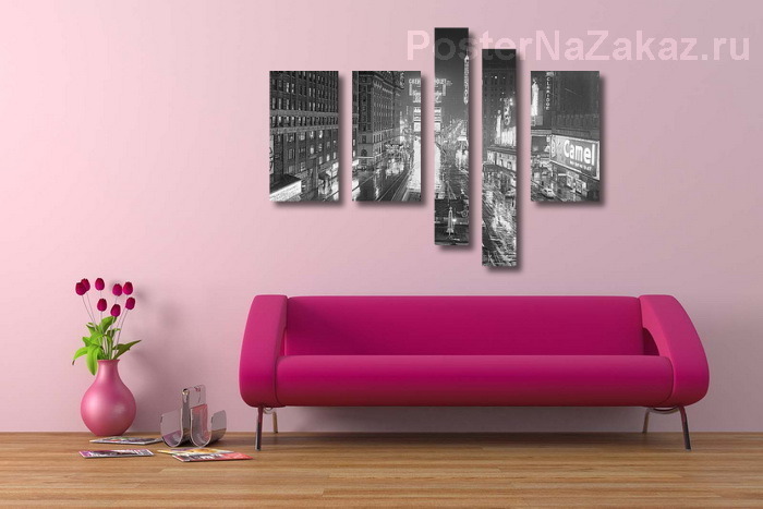 Модульная картина "Таймс Сквер в дождливую ночь.Май 1952г."