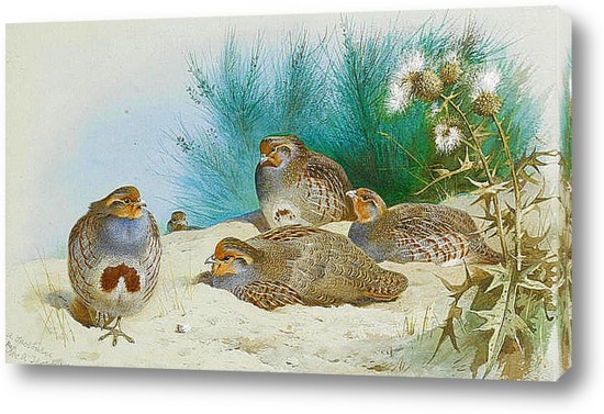 Картина "Английская куропатка с можжевельником и чертополохом"