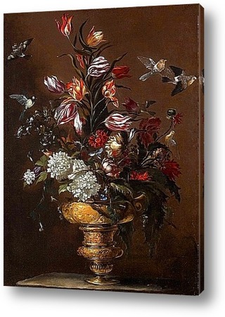 Картина "Цветы в золочёной вазе на каменном выступе"