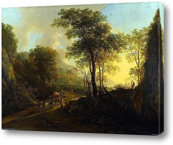 Картина "Скалистый пейзаж с быками, впряжёнными в телегу"