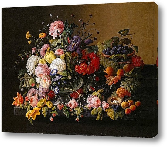 Картина "Натюрморт, Цветы и Фрукты"