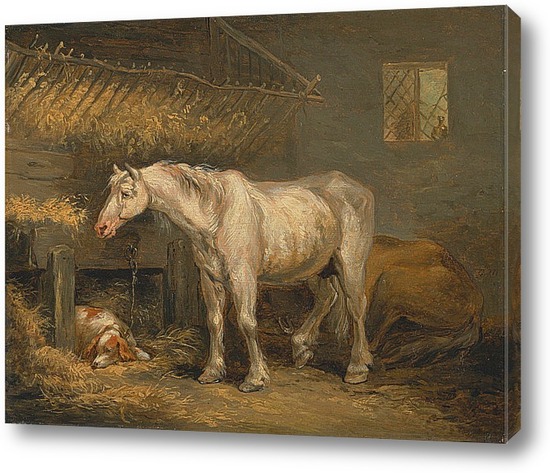 Картина "Старая лошадь с собакой в стойле"