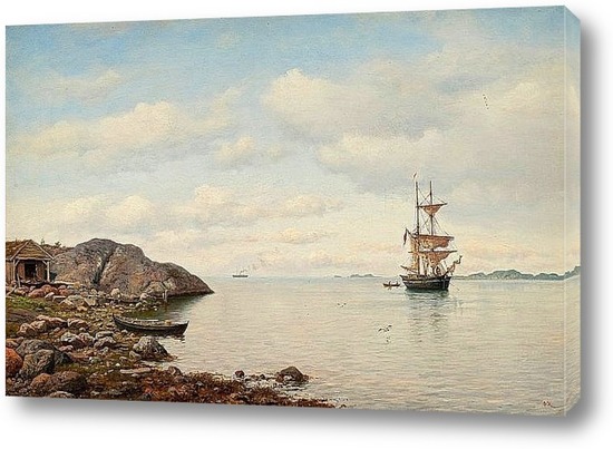 Картина "ПАРУСНОЕ СУДНО ОКОЛО БЕРЕГА"