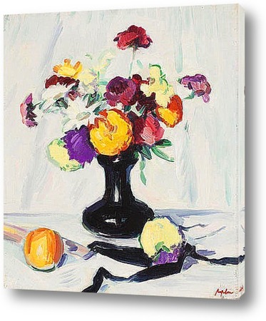 Натюрморт с цветами, фруктами
