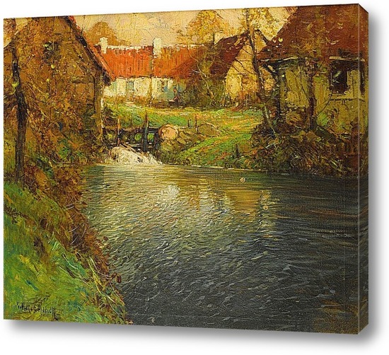Картина "Коттеджи на берегу реки в Нормандии"