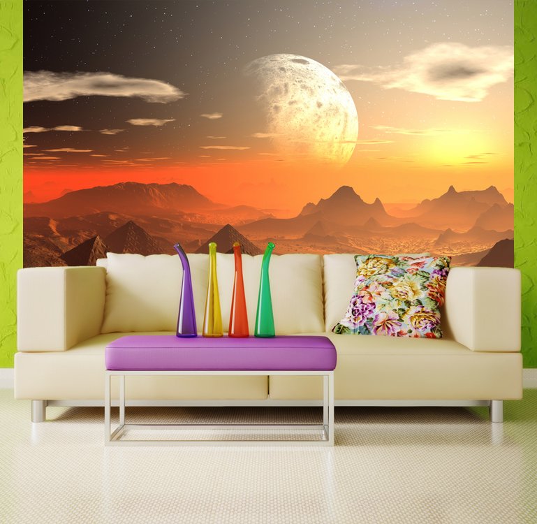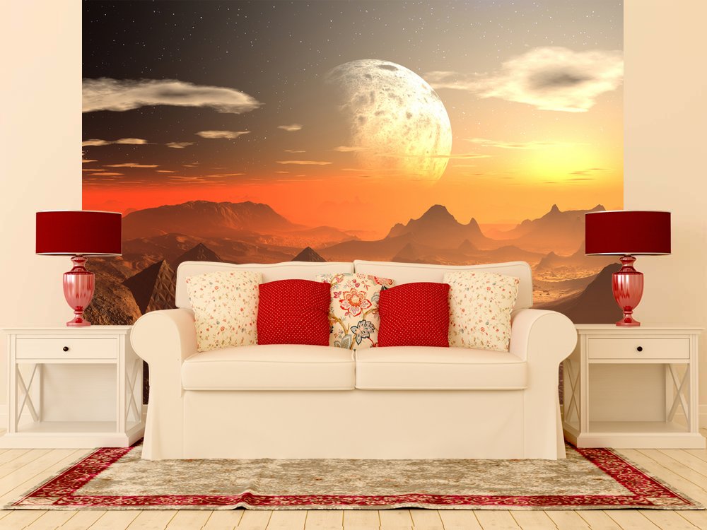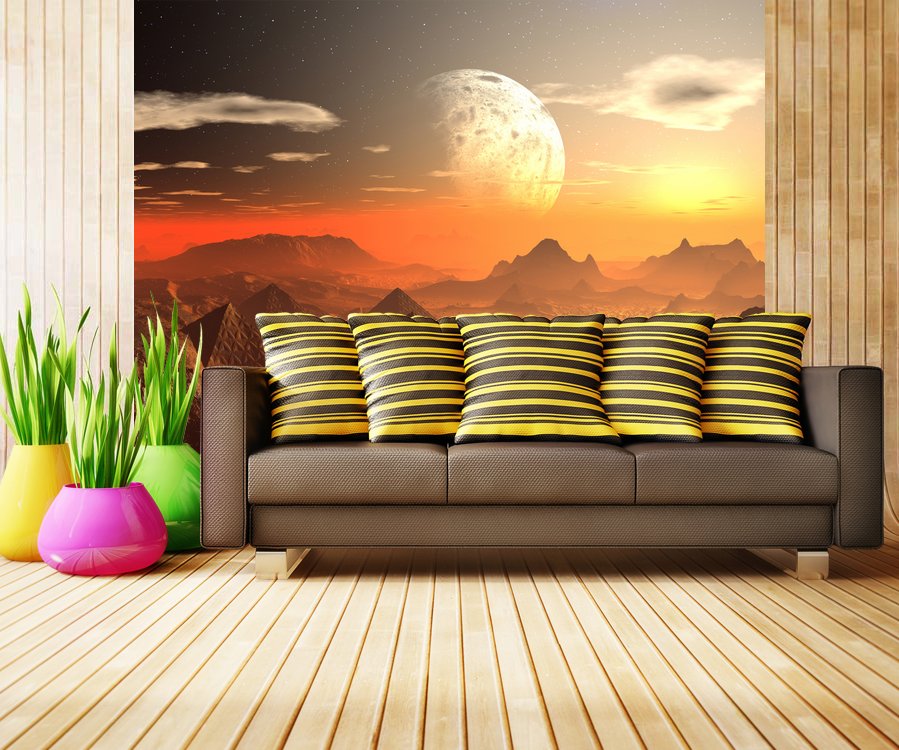 Флизелиновые фотообои с ПВХ-покрытием (виниловые фотообои на флизелиновой основе). Фактура  песок.Материал пожаробезопасен и может использоваться в помещениях с повышенными требованиями пожарной безопасности. Плотность фотообоев изготовленных из данного материала составляет : 250 гр/м²