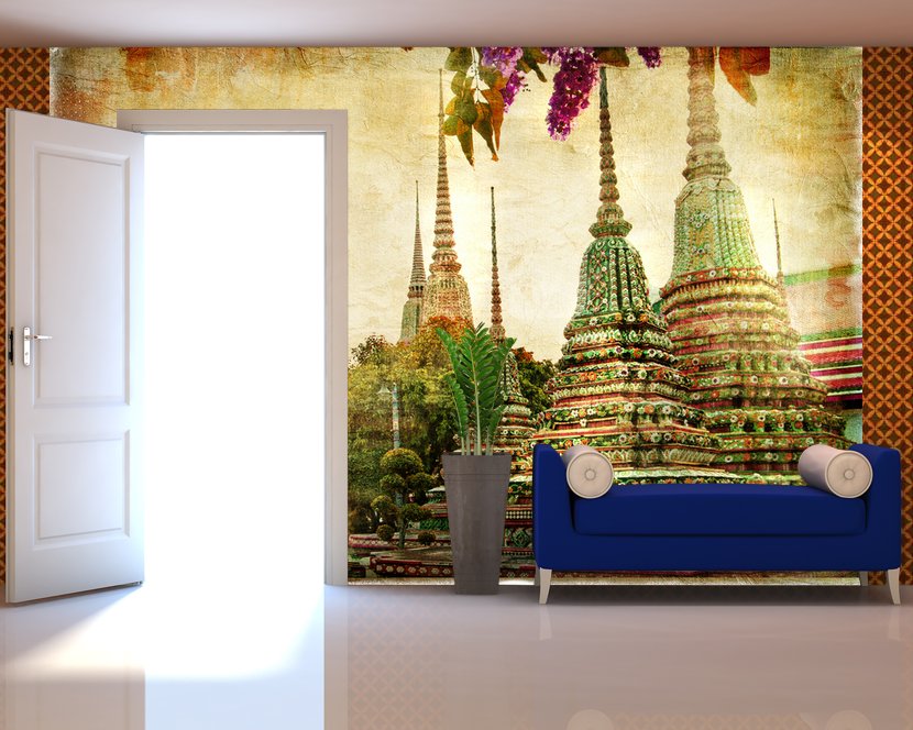 Флизелиновые фотообои с ПВХ-покрытием (виниловые фотообои на флизелиновой основе). Фактура  фреска.Материал пожаробезопасен и может использоваться в помещениях с повышенными требованиями пожарной безопасности. Плотность фотообоев изготовленных из данного материала составляет : 300 гр/м²