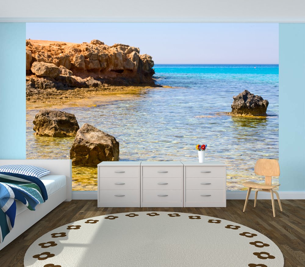 Флизелиновые фотообои с ПВХ-покрытием (виниловые фотообои на флизелиновой основе). Фактура  песок.Материал пожаробезопасен и может использоваться в помещениях с повышенными требованиями пожарной безопасности. Плотность фотообоев изготовленных из данного материала составляет : 250 гр/м²