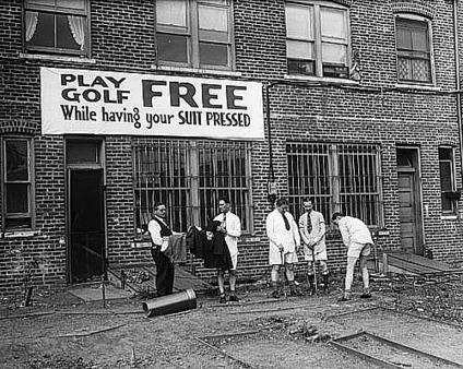 Игрок в гольф на балке.