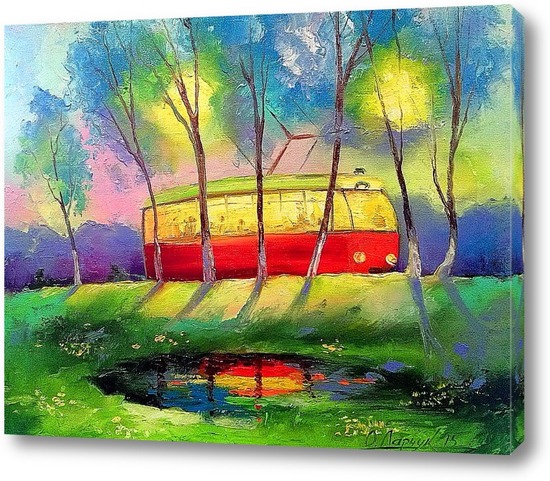 Описание картины Картина маслом на холсте,красивая картина маслом на холсте,картина маслом для интерьера,живописная картина маслом на холсте,картина маслом на подарок,импрессионизм,картина маслом Ольги Дарчук,трамвай,улица,весна