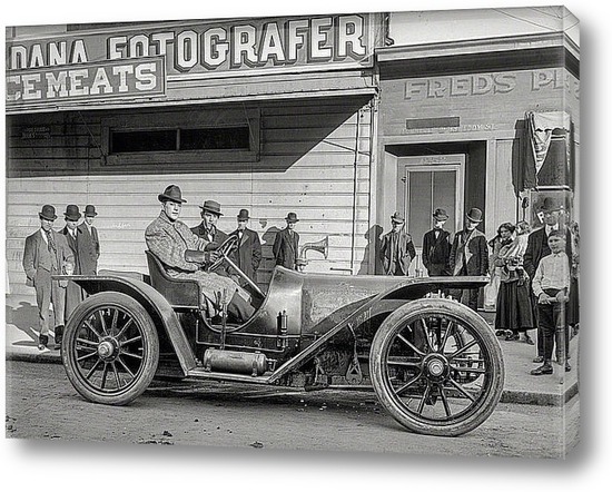 Картина "Боксер Стэнли Кетчел на колесах американского подвесного авто с менеджером Бритт Уиллисом"