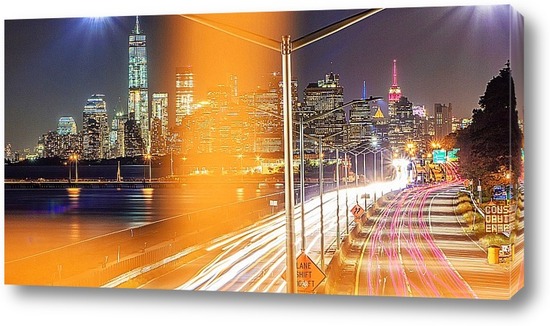 Описание картины вечерняя прогулка закончилась вот такими кадрами! Осенний Манхеттен! эту фотографию можно снимать вечно! Фото сделано на длинной выдержке, 2мин 35 сек! поэтому так красиво и ярко получаются огни и вода принимает чарующий видВид с набережной down town