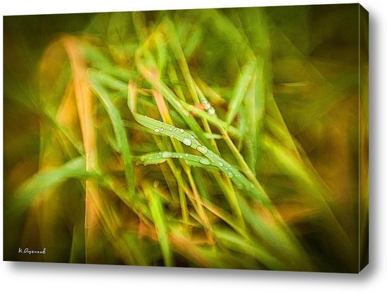 Картина "Дождевые капли на зелёной траве"