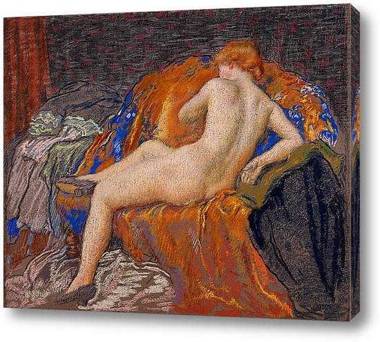 Картина "Обнаженная, сидящая на желтом платке, 1925"