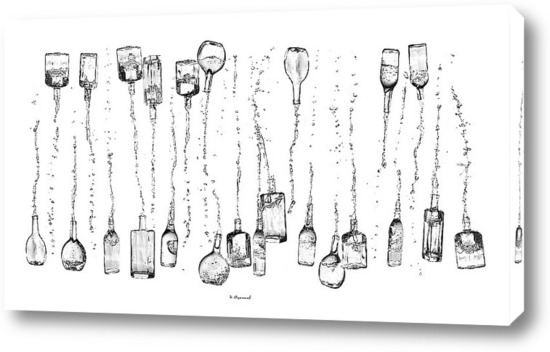 Картина "Бутылки, из которых льются струи вина."