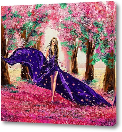 Описание картины Цветущие деревья вдоль небольшой тропинки в утреннем тумане - впечатления от ожидания приближающейся весны перенесённые на холст.