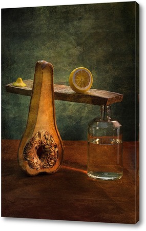 Картина "Анатомия тыквы.Тыква с лимоном и дистиллированной водой "