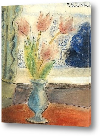 Картина "Тюльпаны в синей вазе"